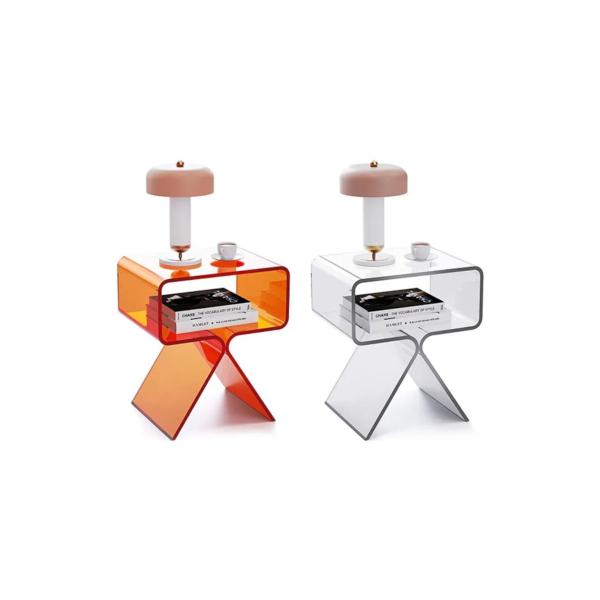 Modern tasarımıyla evinizin dekorasyonuna şıklık katan akrilik komidin yan sehpa, geometrik şekilleriyle mekanınıza çağdaş bir hava katıyor; Şeffaf ve turuncu renk kombinasyonu, mekanınızda canlılık ve sıcaklık yaratırken, modern stilinizi ön plana çıkarıyor; Dayanıklı plastik materyali sayesinde uzun ömürlü kullanım sunan bu yan sehpa, kolay temizlenebilir yapısıyla pratik bir kullanım vaat ediyor; Tek parça halinde gelen bu ürün, minimalist ve fonksiyonel bir çözüm olarak ihtiyacınız olan her şeyi tek bir pakette sunuyor;