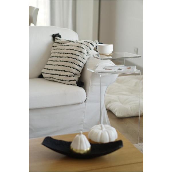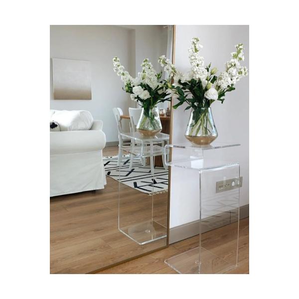 Ürünümüz 10 mm dökme şeffaf pleksiden özel olarak üretilmekte olup, geri iadesi mümkün değildir. ; Ürün, 55 cm yüksekliğinde olup, tablası 25x30 cm dir. ; Pleksi sehpanın esnekligini azaltmak ve mukavemetini artırmak maksadıyla,istenildiğinde çıkarılabilir dekoratif özellikli şeffaf pleksi boru monte edilmiştir. ; Ürünümüzü piyasadaki 6 veya 8 mm pleksiden yapılmış ürünler ile lütfen kıyaslamayıniz. ; Pleksi sehpanizi yalnızca nemli bez ile temizleyip kurulayınız.;